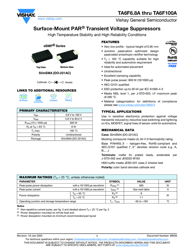 TA6F6.8A thru TA6F100A