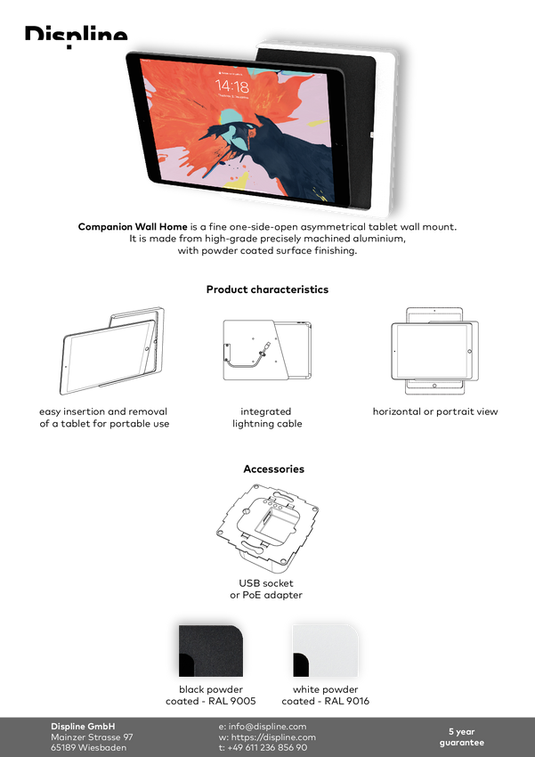 Displine Dame Wall 2.0 Uchwyt ścienny do tabletu Apple iPad 10.9" (10th gen.) 27,7 cm (10,9")