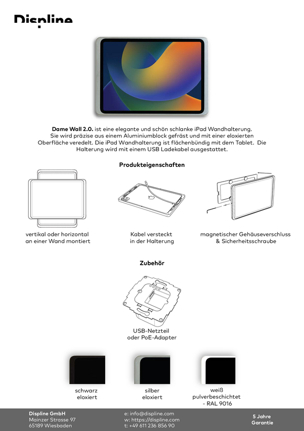 Displine Dame Wall 2.0 Uchwyt ścienny do tabletu Apple iPad mini (6. Gen.) 21,1 cm (8,3")