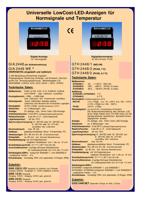 Termometr tablicowy, panelowy Greisinger GTH2448/3, -60 do +199,9 °C, Dokładność: ± 0,5 %
