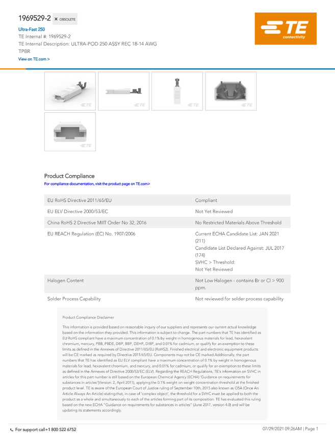 Ultra-Pod FASTON Receptacles and Tabs TE Connectivity 1969529-2 TE AMP Ultra-Pod FASTON Receptacles and Tabs, 1 szt.
