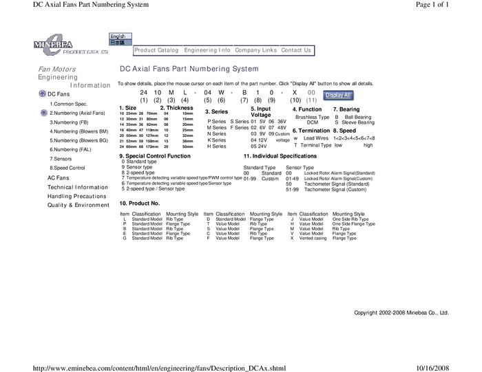 wentylator 50x50x10; 5V, łożyskowany są wersje B00 - Rotor Protection; B50- Tachometr