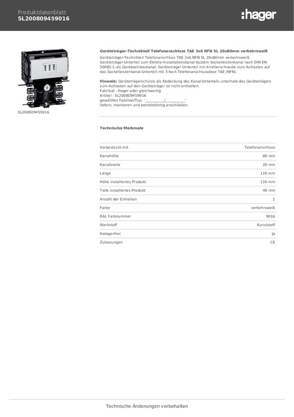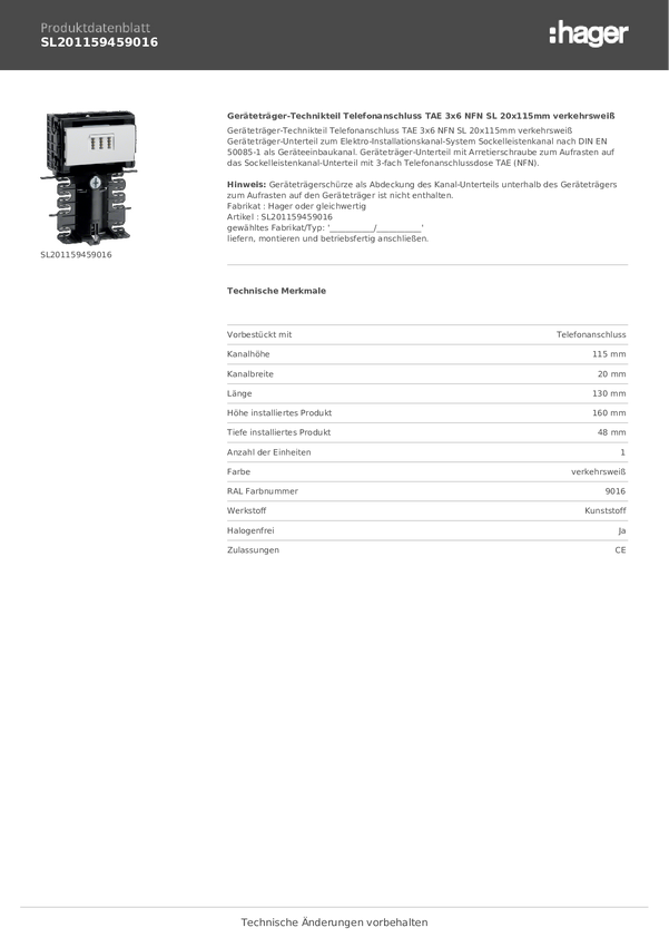 SL200559459016 Akcesorium do listw Tehalit Gniazdo serwisowe TAE biały 1 szt.
