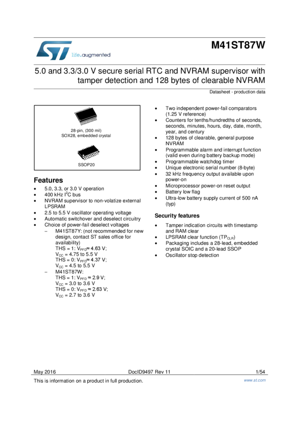 5.0 V, 3.3/3.0 V secure real-time clock , NVRAM supervisor with tamper detection and 128 bytes of clearable NVRAM