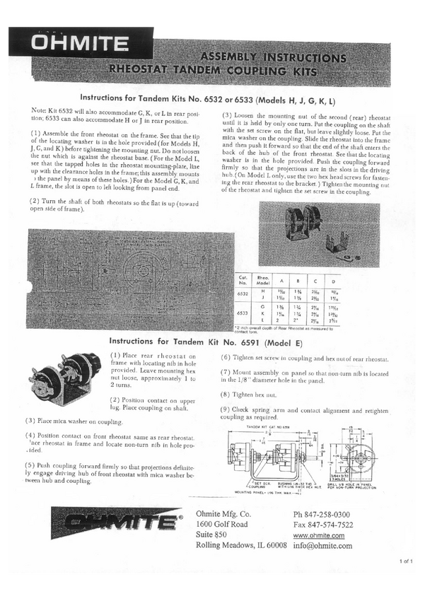 Osprzęt do montażu dwóch reostatów omite w tandemie Front mount models: G,K,L (75W, 100W, 150W) Rear mount models: H,J,G,K,L (25W, 50W, 75W, 100W, 150W) Max.panel. 1/8"