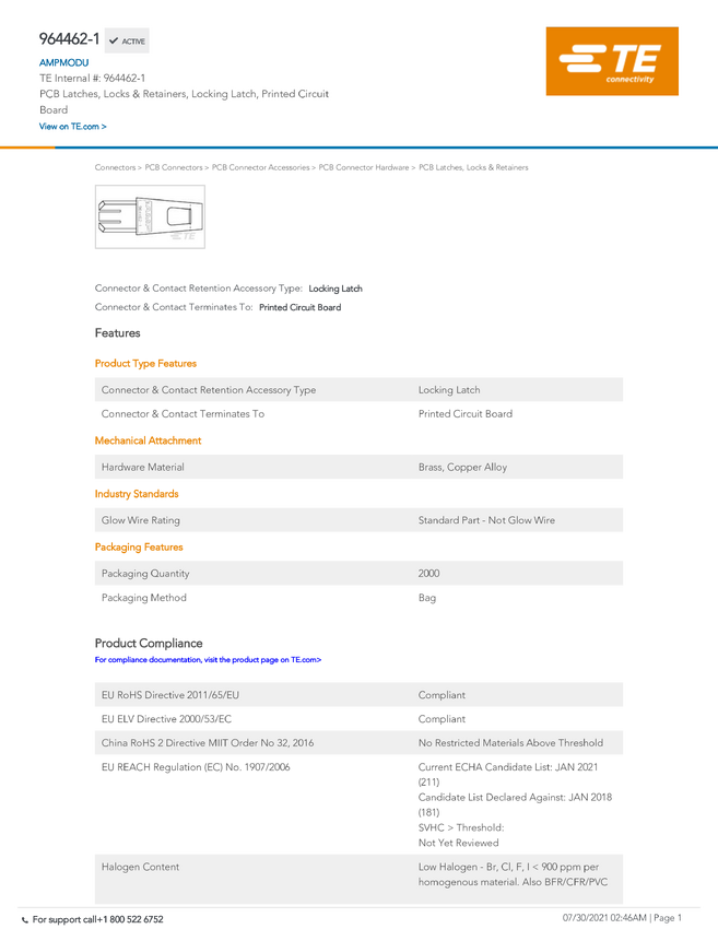 Tandem Spring TE AMP Tandem Spring 964462-1 TE Connectivity Zawartość: 1 szt.