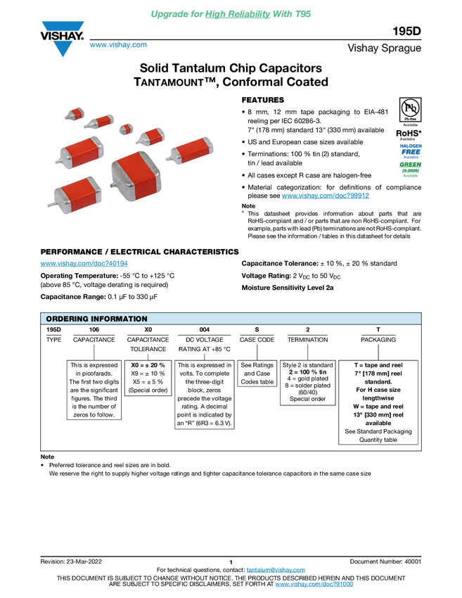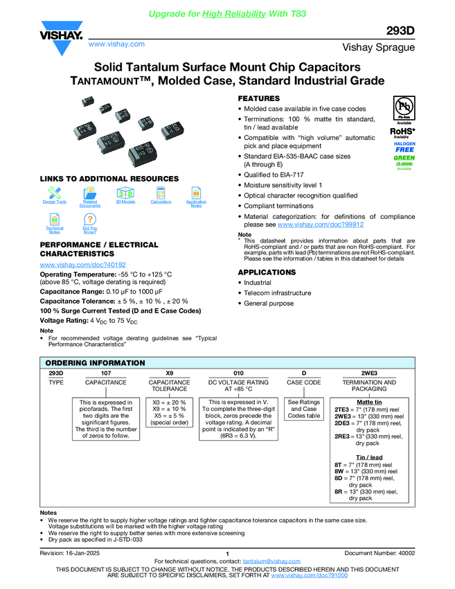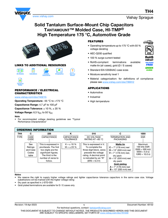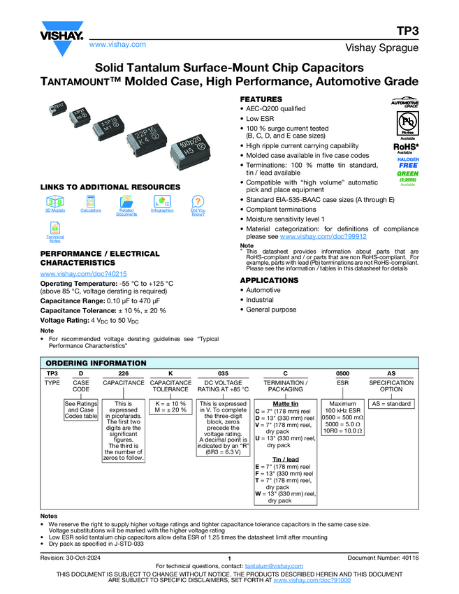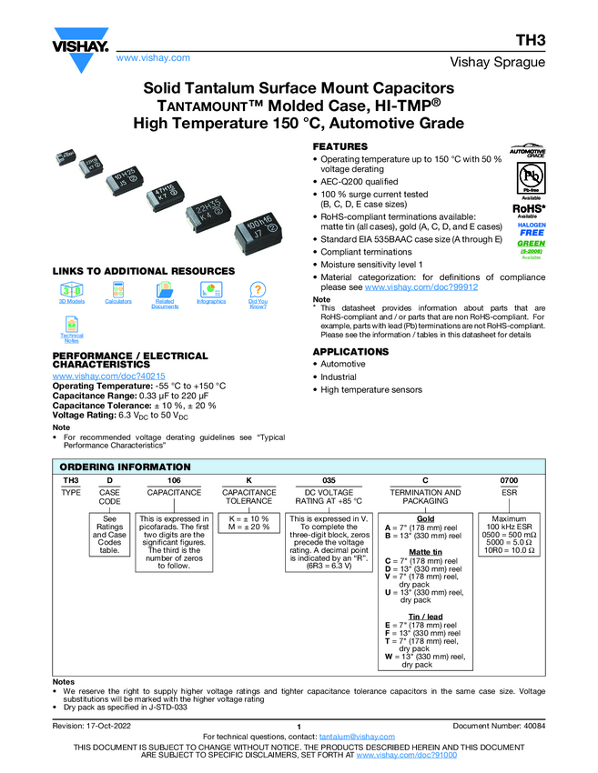 Solid Tantalum Surface-Mount Chip Capacitors TANTAMOUNT™ Molded Case, High Performance, Automotive Grade