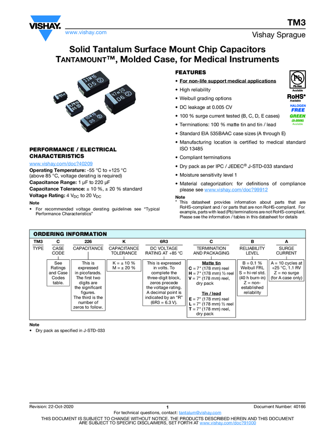 Solid Tantalum Chip Capacitors, TANTAMOUNT™, Conformal Coated