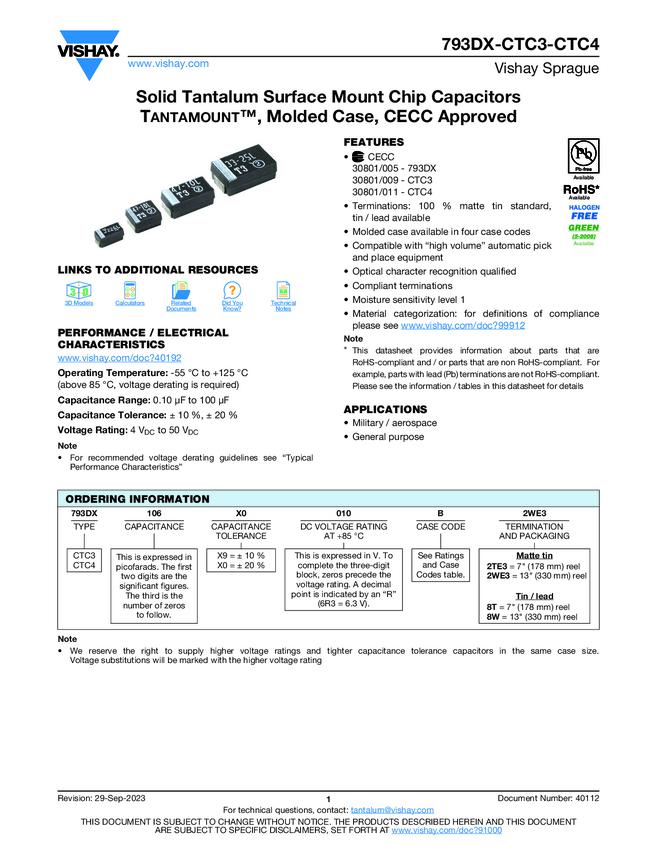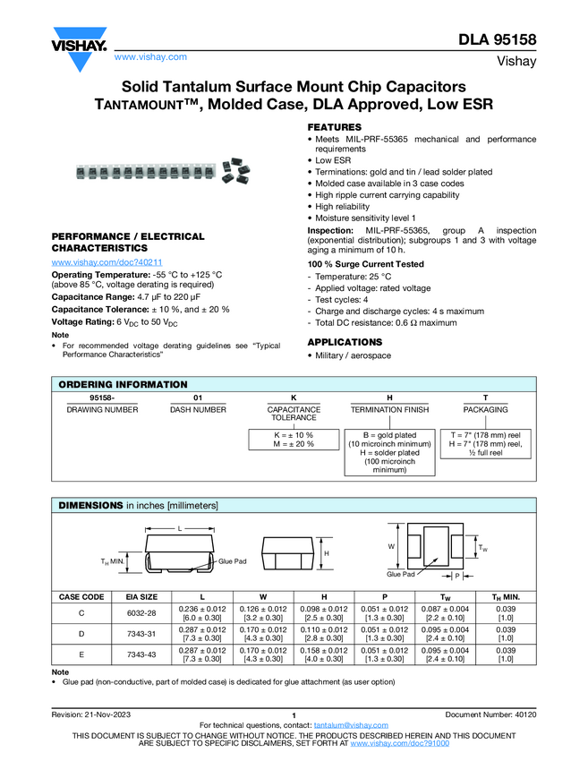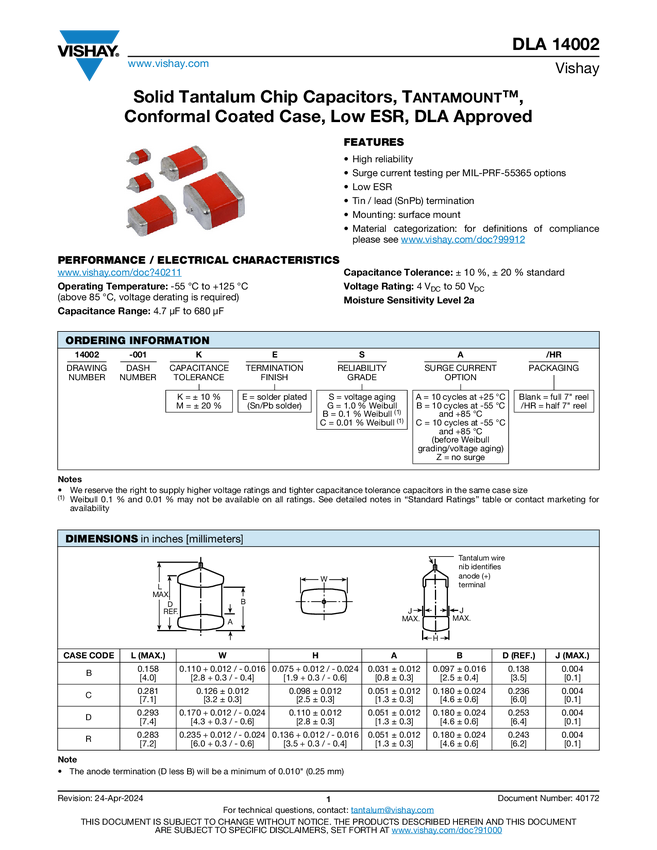 Solid Tantalum Chip Capacitors, TANTAMOUNT™, Conformal Coated Case, Low ESR, DLA Approved