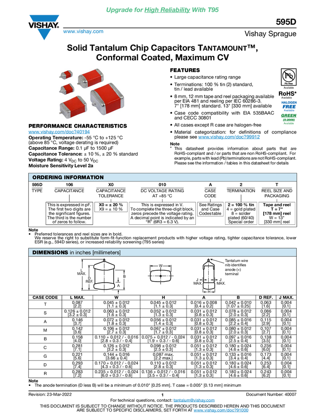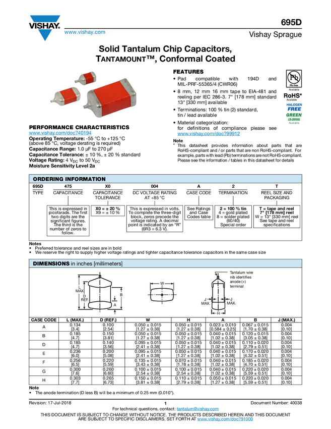 Solid Tantalum Chip Capacitors TANTAMOUNT™, Conformal Coated