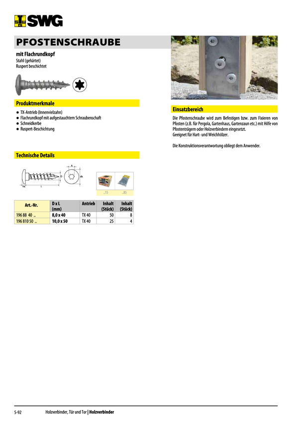 Wkręty do słupków tarasowych SWG 1968105015 10 mm 50 mm 25 szt.