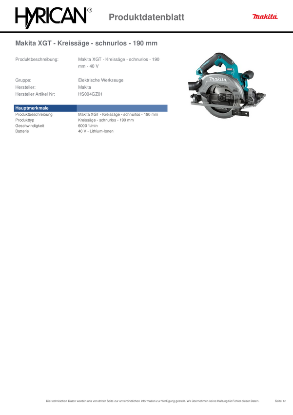 Piła tarczowa akumulatorowa Makita S_0380_7719752 40 V Głębokośc cięcia maks. (90°) 62.5 mm