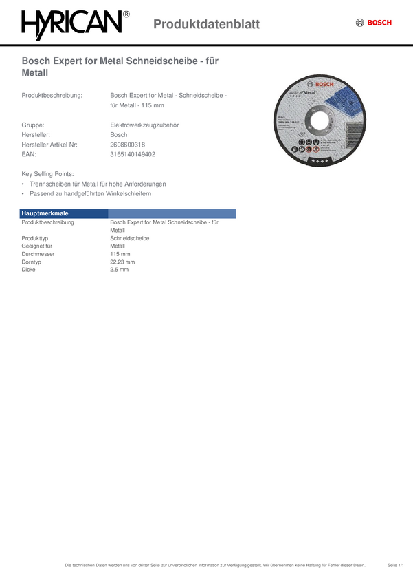Tarcza tnąca prosta Bosch Accessories 2608600318 2608600318 115 mm 1 szt.