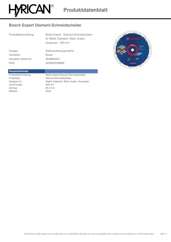 Bosch Accessories 2608900537 M14 Tarcza tnąca diamentowa Średnica 355 mm Średnica otworu 25.4 mm 1 szt.