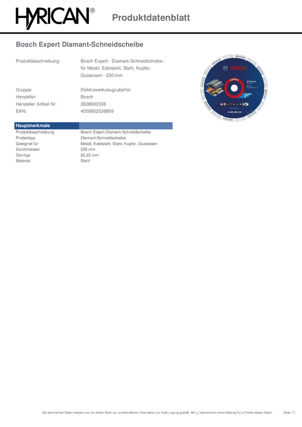 Bosch Accessories 2608900536 M14 Tarcza tnąca diamentowa Średnica 230 mm Średnica otworu 22.23 mm 1 szt.