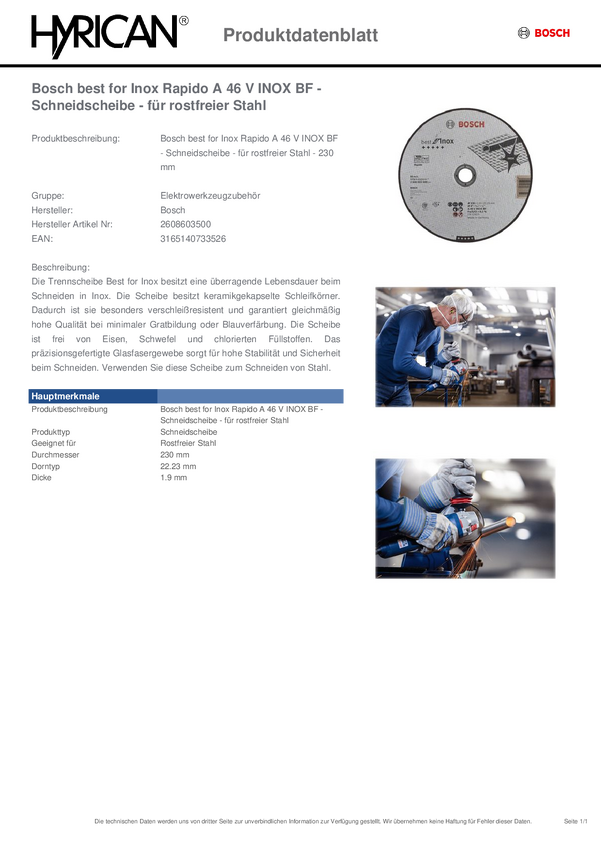 Tarcza tnąca prosta Bosch Accessories 2608603500 2608603500 230 mm 1 szt.