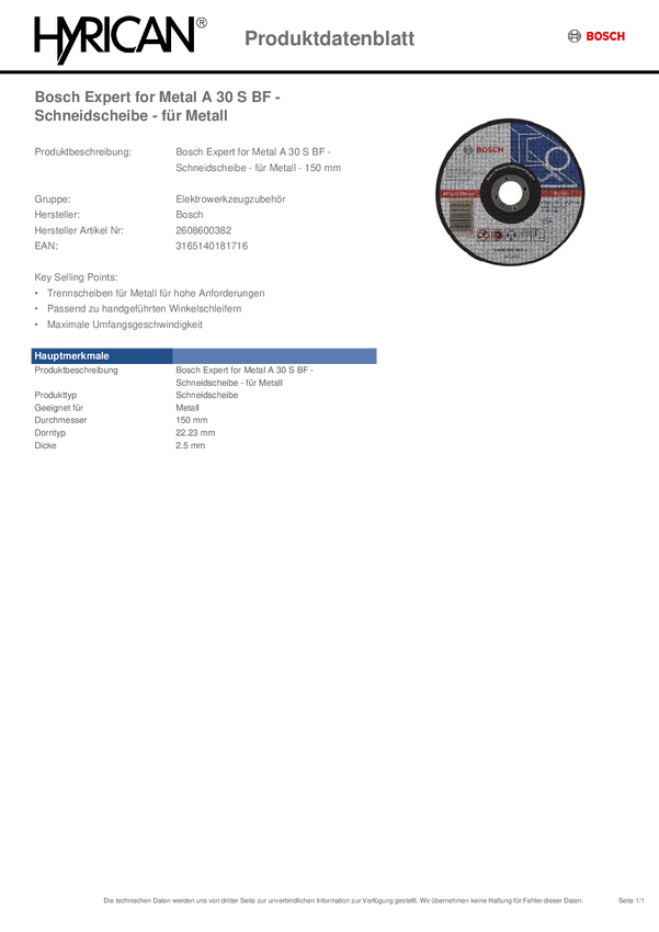 Tarcza tnąca prosta Bosch Accessories 2608600382 2608600382 150 mm 1 szt.