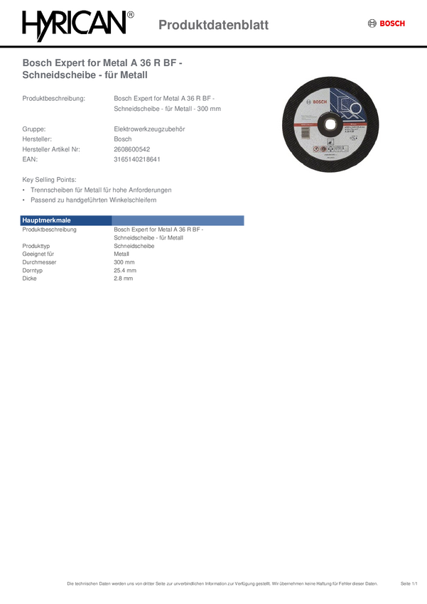 Tarcza tnąca prosta Bosch Accessories 2608600542 2608600542 300 mm 1 szt.