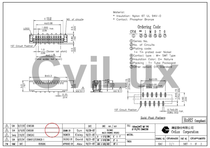Złącze do tasmy FFC, 14-stykowe, poziome, SMD, CvilLux