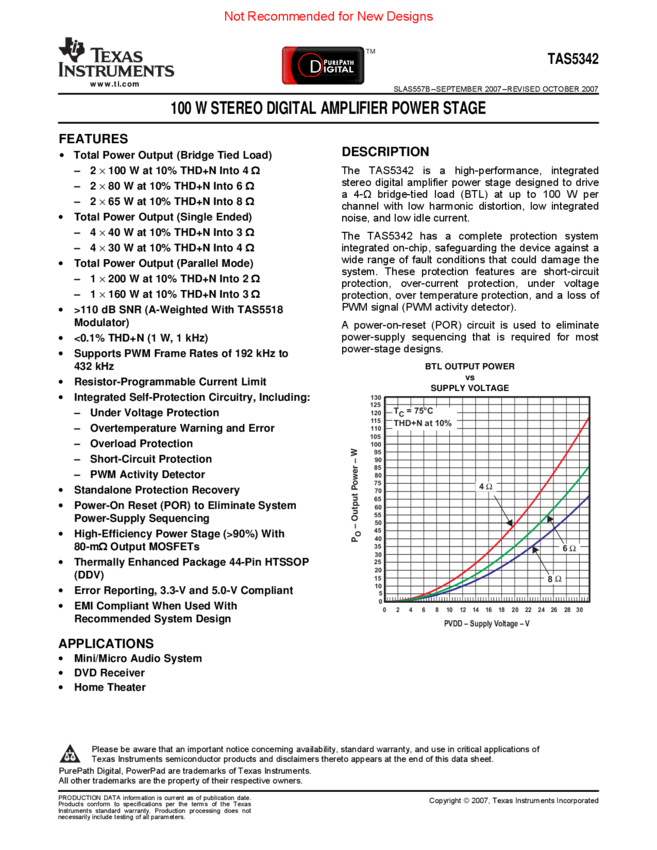 Audio Amp Speaker 1-CH Mono/2-CH Stereo/4-CH Stereo 100W Class-AB 44-Pin HTSSOP EP T/R