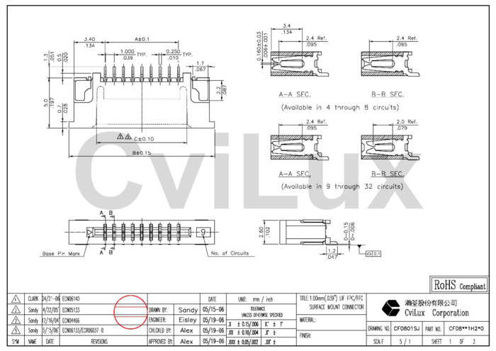 Złącze do tasmy FFC, 4-stykowe, pionowe, SMD, CvilLux