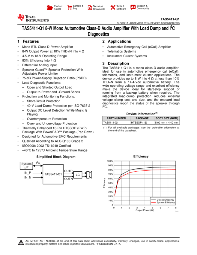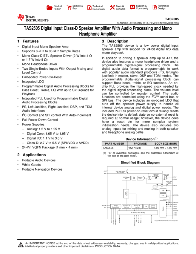 Audio Amp Speaker 1-CH Mono 8mW Class-D 16-Pin HTSSOP T/R