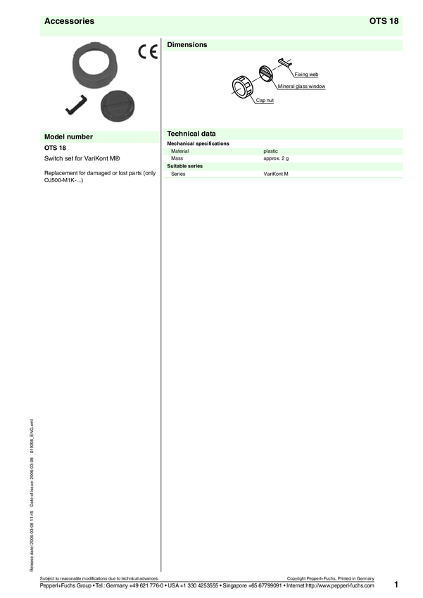 Przycisk Pepperl+Fuchs OTS18 Taster 019208 5 szt.
