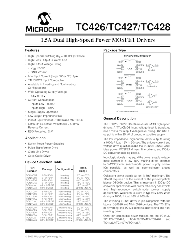 1.5A High-Speed 30V MOSFET Drivers (01/11/2008)