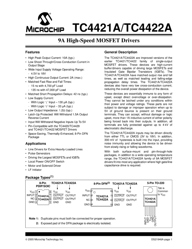 TC4421A/TC4422A Data Sheet (04/29/2005)