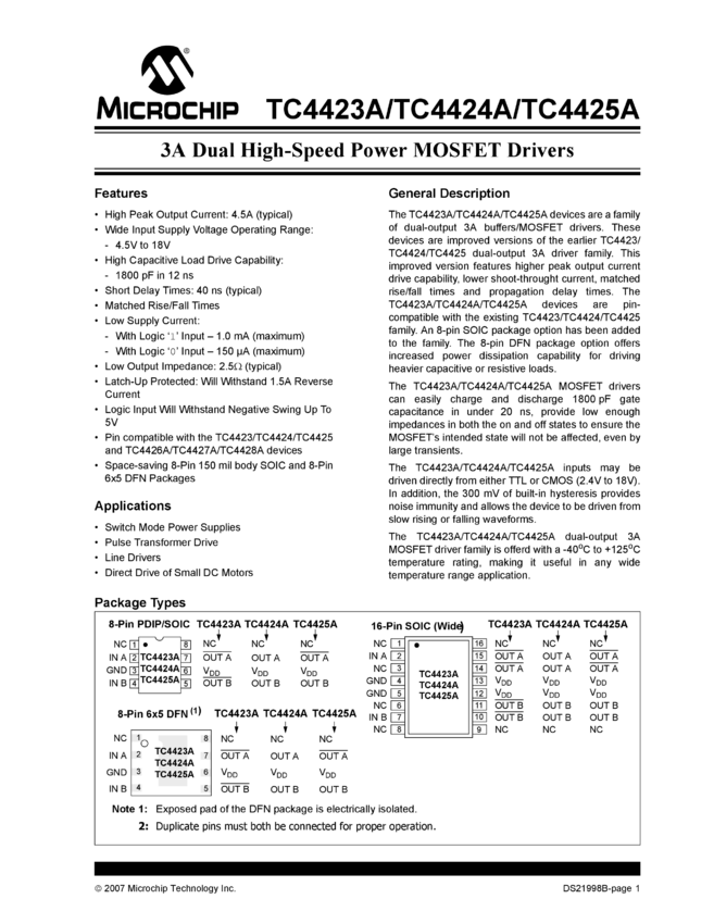 TC4423A/TC4424A/TC4425A Data Sheet (04/30/2007)