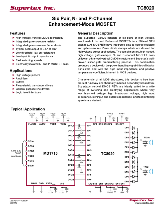TC8020 Datasheet - Six Pair, N- and P-Channel Enhancement-Mode MOSFET (06/22/2014)