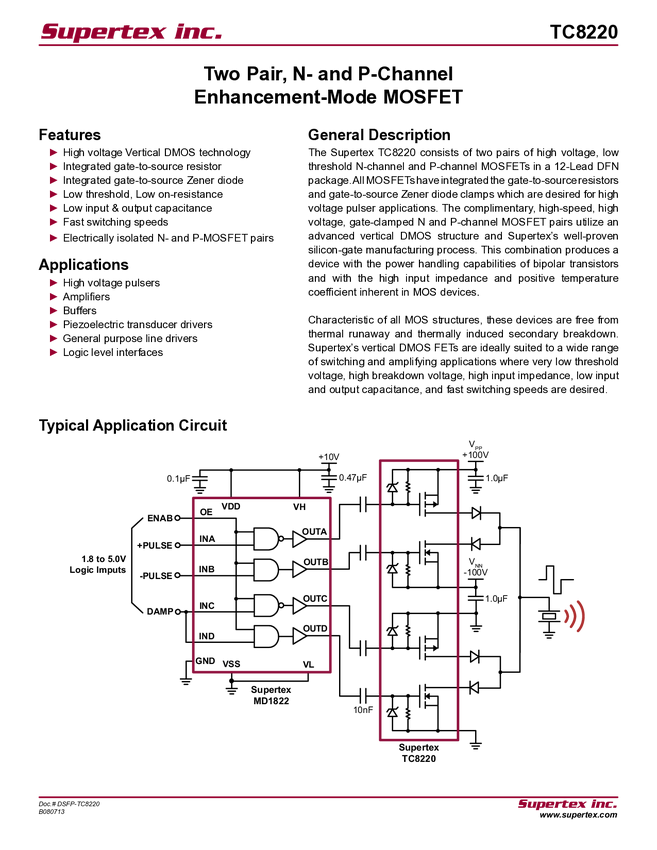 TC8220 Datasheet - Two Pair, N- and P-Channel Enhancement-Mode MOSFET