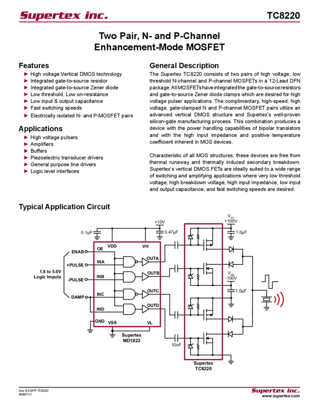 TC8220 Datasheet - Two Pair, N- and P-Channel Enhancement-Mode MOSFET (06/27/2014)