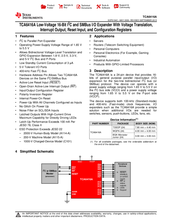 I2C and SMBus I/O Expander 24-Pin TSSOP T/R