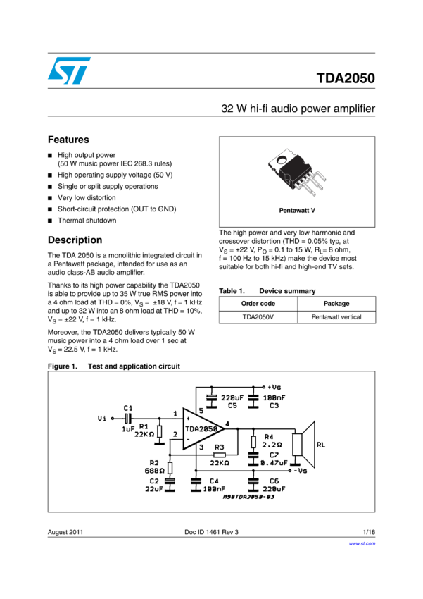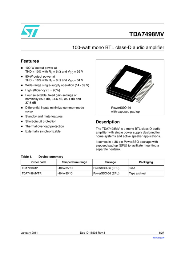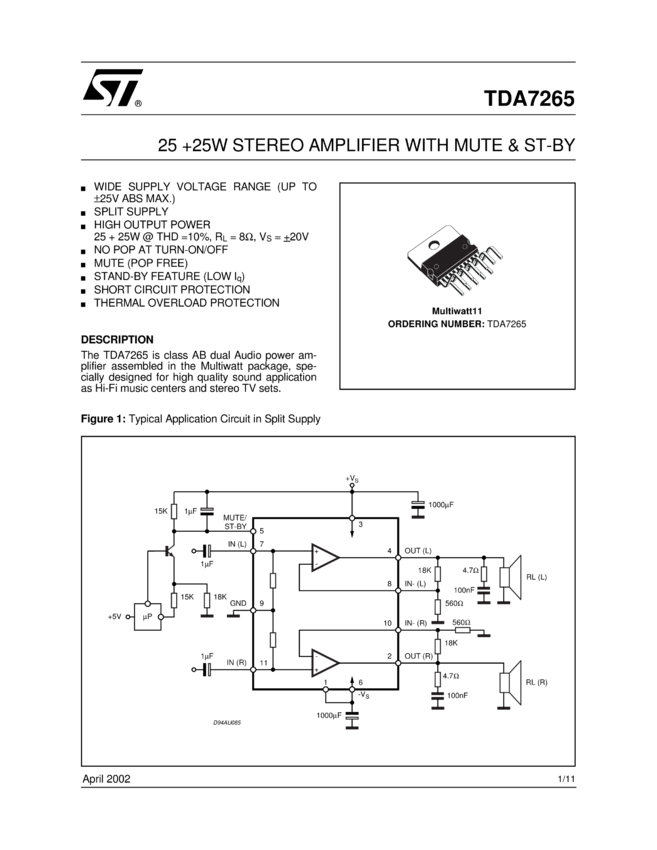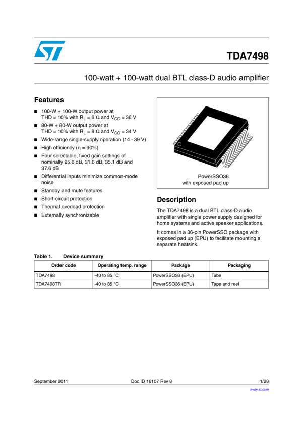 100 V, 100 W DMOS audio amplifier with mute and standby