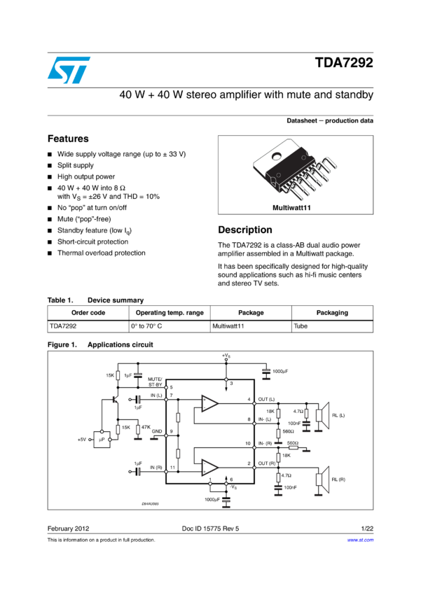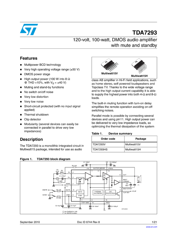 120 V / 100 W DMOS audio amplifier with mute and standby
