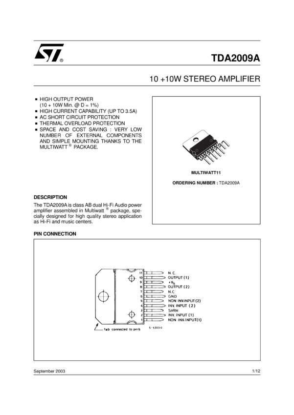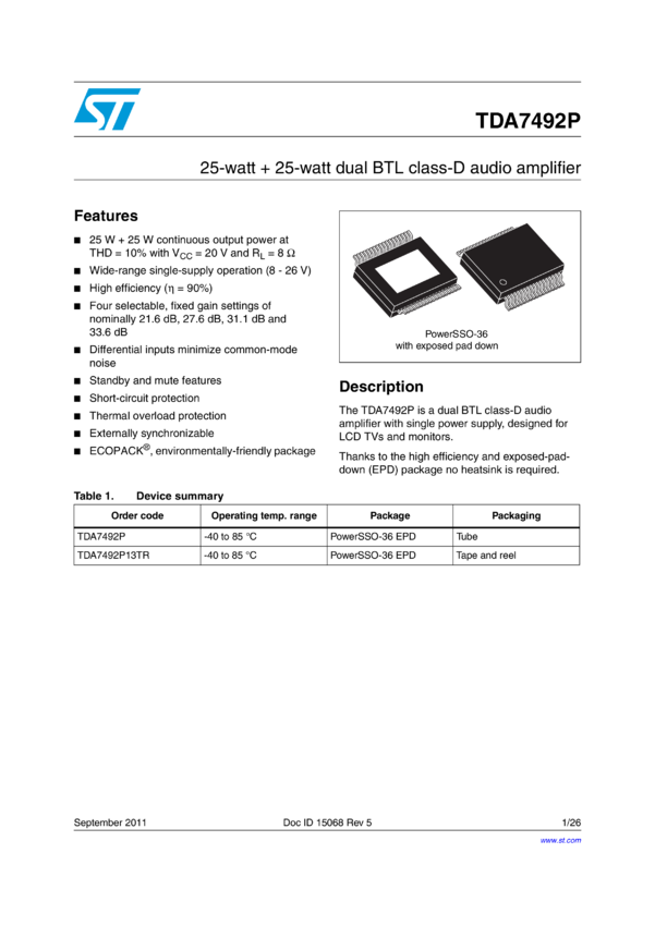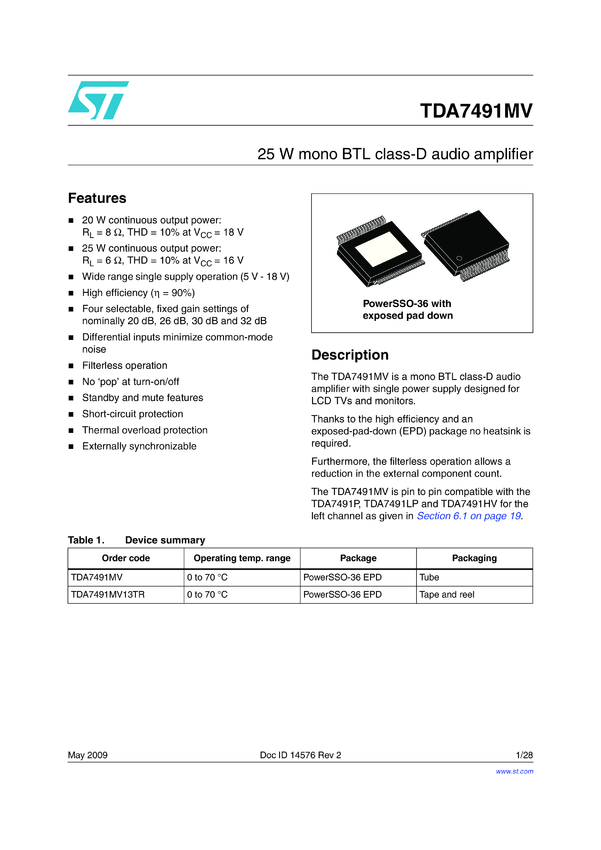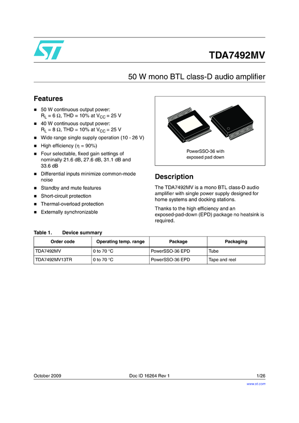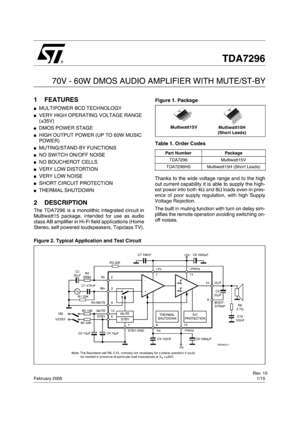 70 V, 60 W DMOS audio amplifier with mute and standby