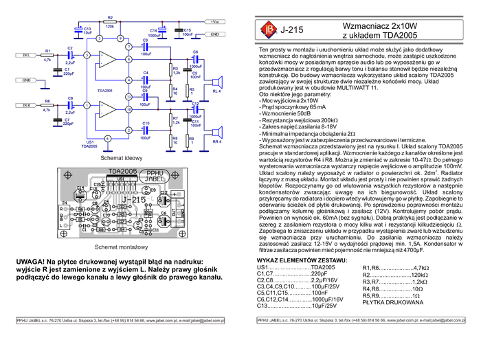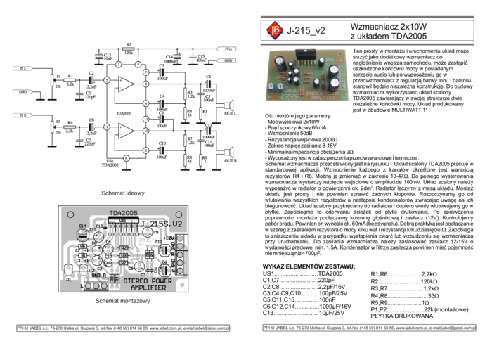 J-215 Wzmacniacz mocy z układem TDA2005