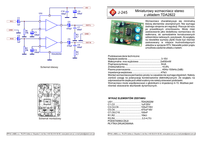 J-245 Miniaturowy wzmacniacz stereo z układem TDA2822