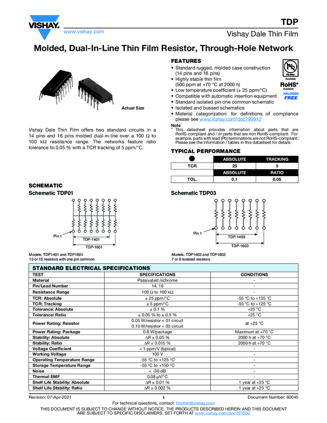 Molded, Dual-In-Line Thin Film Resistor, Through-Hole Network