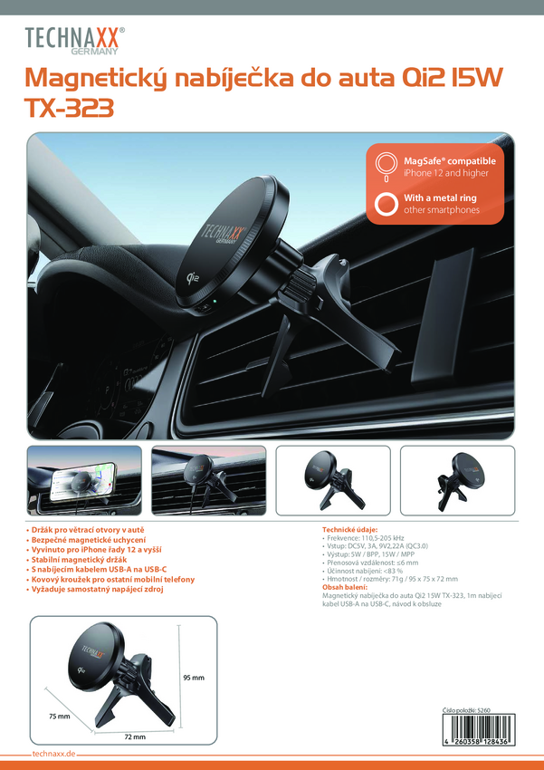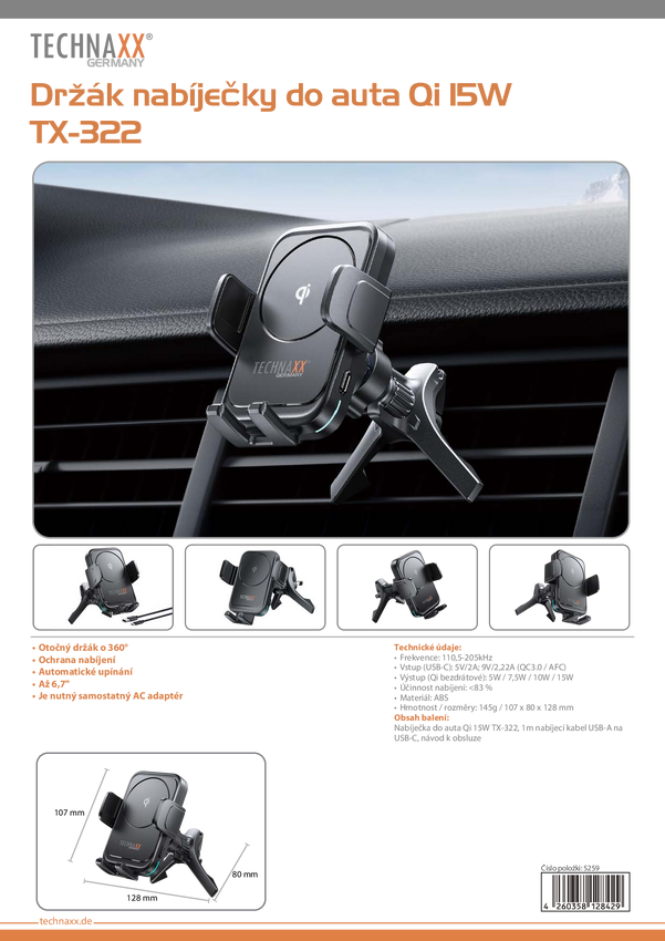 Technaxx Ładowarka indukcyjna 15 W TX-322 5259 Rodzaj wyjścia bezprzewodowe QI czarny