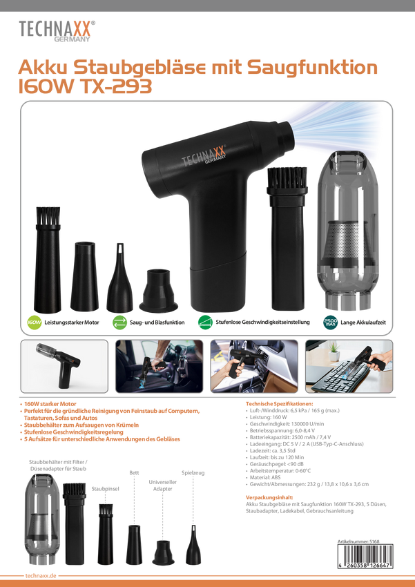 Technaxx 5168 Odkurzacz akumulatorowy czarny 1 szt.