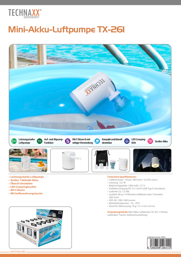 Technaxx 5095 Sprężarka akumulatorowa TX-261