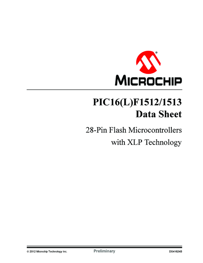 PIC16(L)F1512/1513 28-Pin Flash, 8-Bit MCU with XLP Technology (06/13/2012)