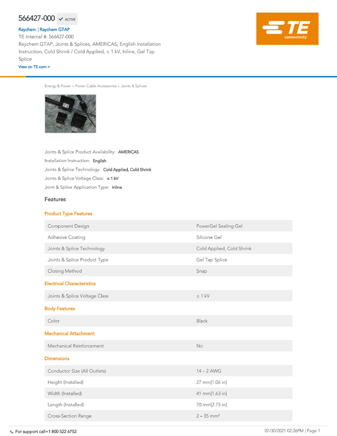 TE Connectivity TE TEE Cold Applied Low Voltage 566427-000, 1 szt.