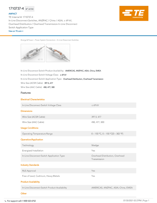 TE Connectivity 1974130-1 TE TEE Underground Line Bolted Connection Products, 1 szt.