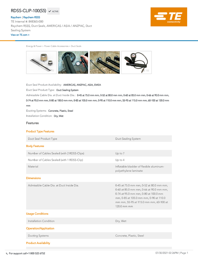 TE Connectivity TE TEE Switchgear Connection System BM1381-000, 1 szt.