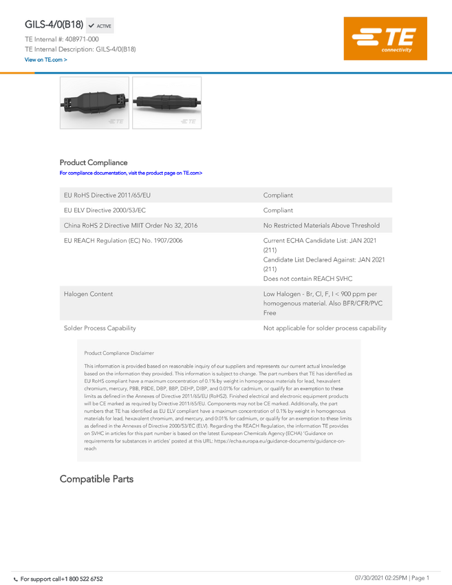 TE Connectivity TE TEE Cold Applied Low Voltage 408971-000, 1 szt.