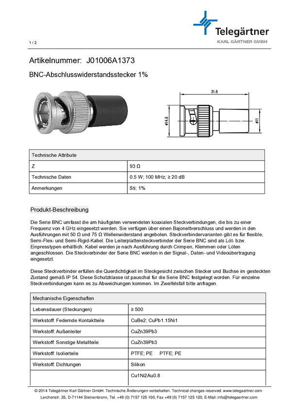 Wejście rezystancyjne Telegärtner 100023628 100023628 1 szt.