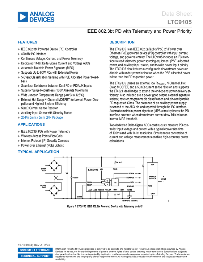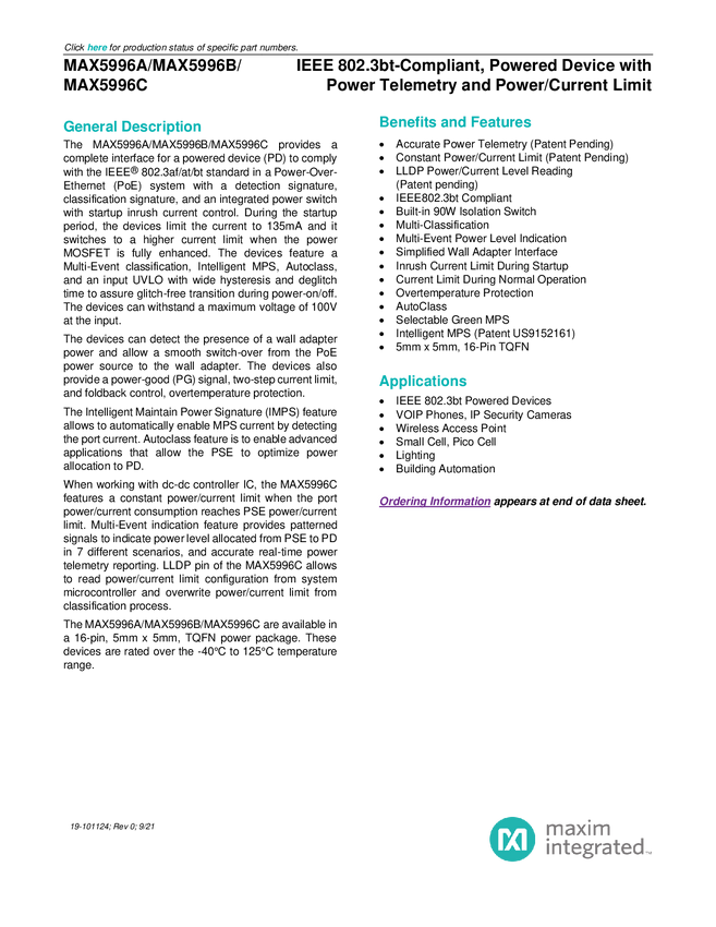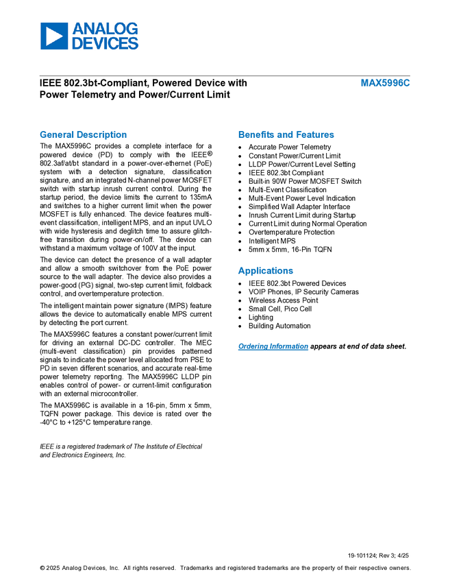 IEEE 802.3bt-Compliant, Powered Device with Power Telemetry and Power/Current Limit